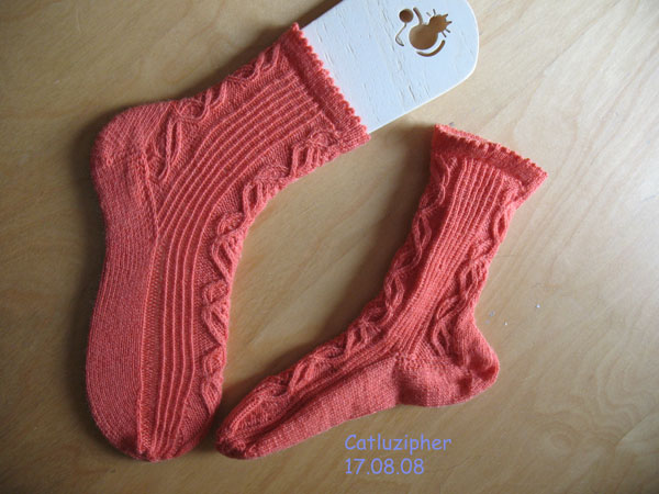 so nennt Claudia das Muster, das sie anlässlich des Treffens bei mir Ende Juli entworfen hat. Auch wenn ich es noch am gleichen Tag angeschlagen habe, so hat es doch einige Zeit gedauert, diese Socken zu stricken. Das Muster ist anspruchsvoll und zeitaufwendig, aber gleichzeitig sehr logisch, so dass man sich es gut merken kann und nicht immer an der Anleitung kleben muss. Gut gefällt mir an den Socken die Fersenlösung, die auch sehr gut passt.