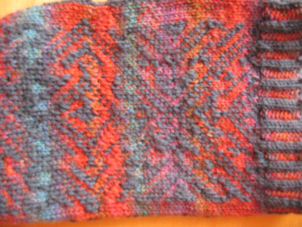 Ja, da sind mal wieder welche, aber die sind etwas Besonderes. Die Stricktechnik ist die gleiche, die ich auch bisher verwendet habe und die auf der Anleitung aus dem Buch Simply Socks basiert. Aber das Muster habe ich dieses Mal selbst entworfen und zwar auf einem Ufostricken der Bremer, als wir im Urlaub an der Nordsee waren. Da die Socken für jemanden sind, den ich sehr mag, wollte ich eben etwas besonderes machen.