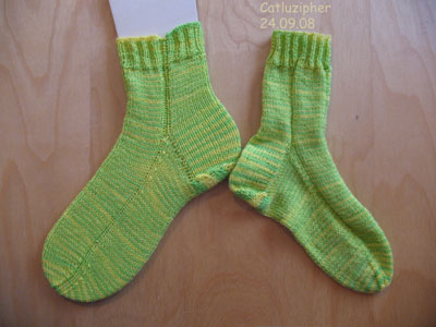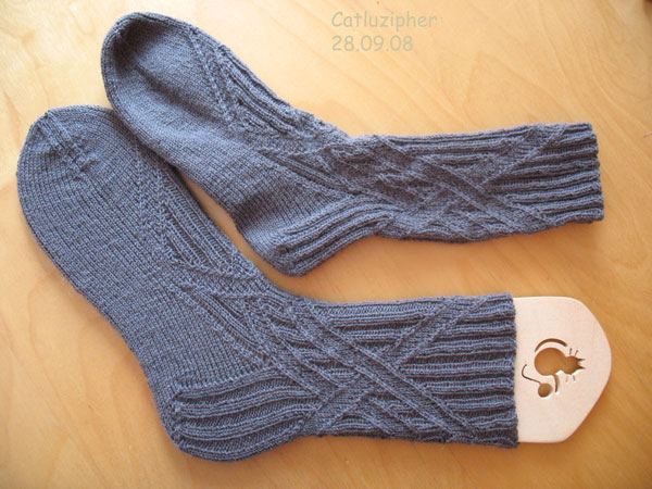 Das zweite Paar ist etwas besonderes. Zu meinem Geburtstag im Juli schenkte mir Beate die Anleitung zu diesen tollen Socken. Ende Juli fand bei mir ein Stricktreffen statt und Beate schenkte mir die passende Wolle zum Muster. Nun schenkte ich mir die Zeit, mich der Wolle und dem Muster zu widmen. Ergebnis ist ein wunderbares Paar Socken.