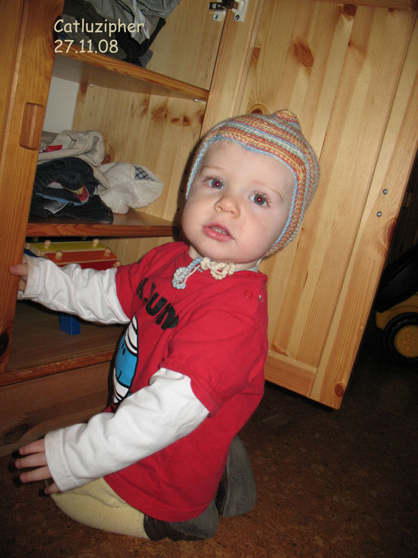 Unser Kleiner braucht ja als Strickerinnenkind natürlich diverse Mützen – praktische und extravagante. Naja, das mit der praktischen Mütze ist etwas knapp ausgefallen, Version 2.0 wird wohl entstehen müssen aber die extravagante hat uns schon viel Lob eingebracht. Überall wird er damit bewundert *mitstolzgeschwellterbrustdasteh*