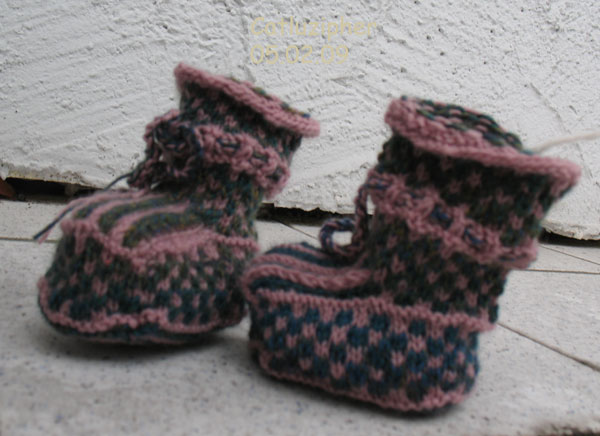 Babyschuhe und wieder frei Schnauze zweifarbig gestrickt.