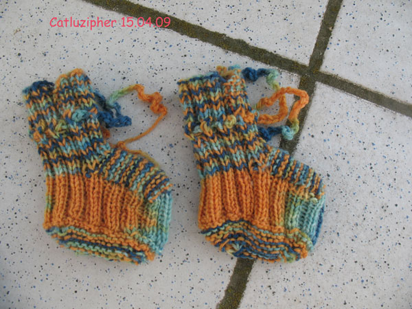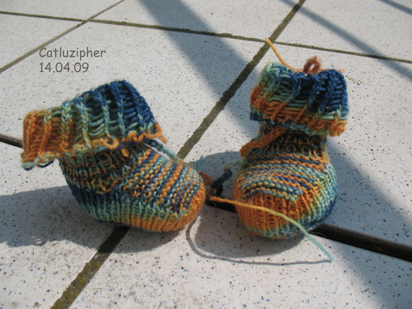 Nun ist wieder ein Rest reif für die Restedecke und beim Zurechtschnitzen sind diese Babyschühchen abgefallen.
