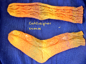 bevor ich zum Agility eile: ich kann die gestern gefärbte Wolle anstricken, denn die aktuellen Socken sind fertig: