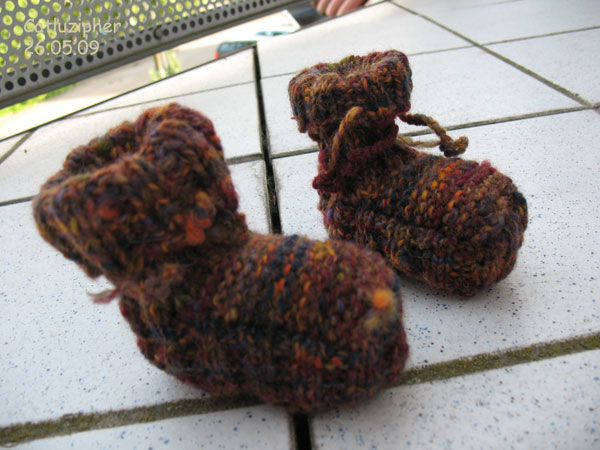 blieb von der Spinnwolle übrig und daraus entstehen nun Babyschuhe – solange es eben reicht.