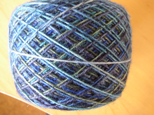 Vor gut einer Woche habe ich diesen schönen Strang geknäuelt. Früher war das mal ein grau – hellgrau mellierter, total zotteliger, unscheinbarer und unbeliebter Knäuel. Seit seinem Bad in Ashfordfarben motivierte er mich schon sehr viel mehr.